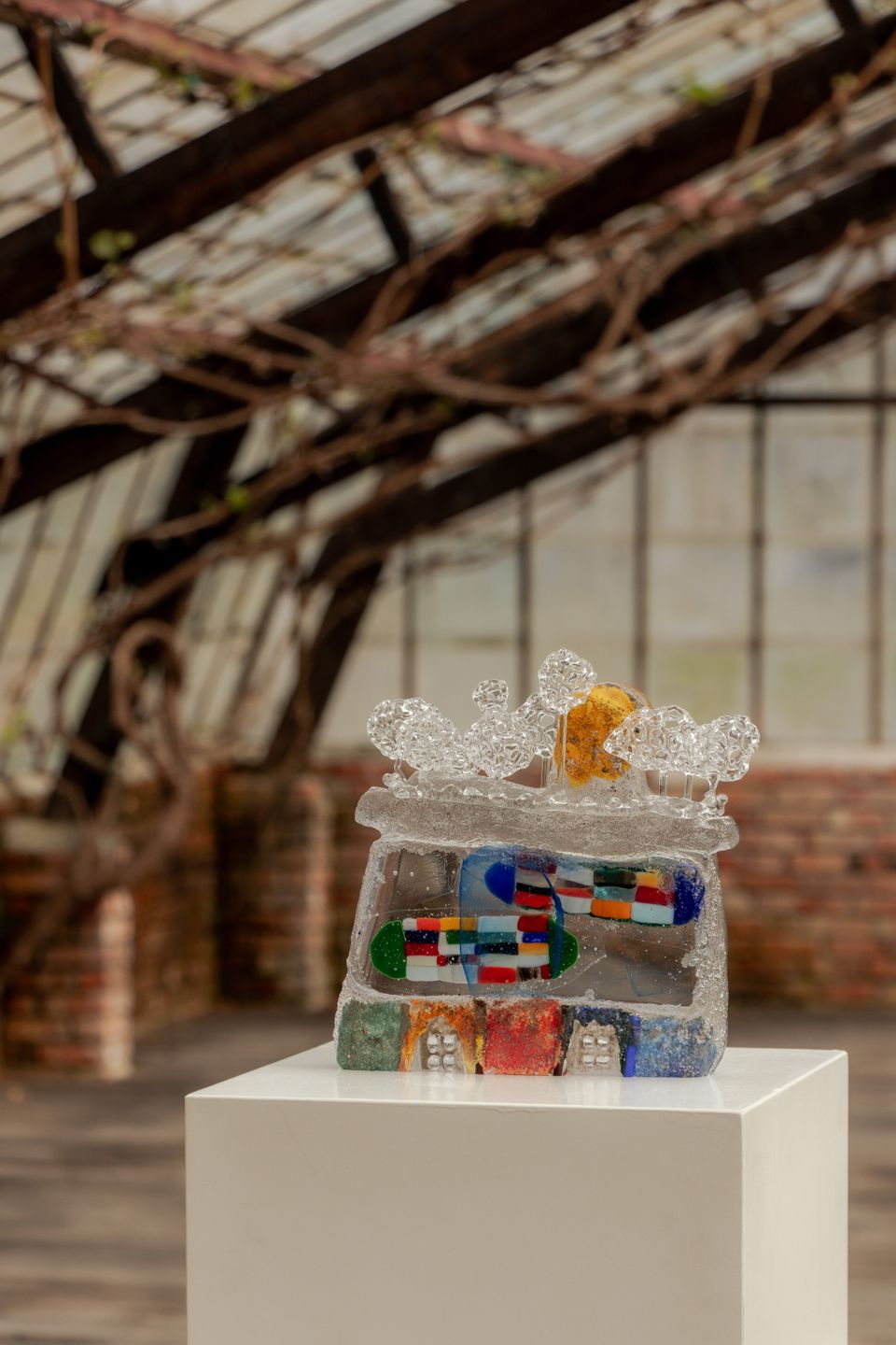 De betoverende sfeer van de antieke Druivenkas op Domein Oogenlust is het ideale decor voor deze één-daagse glasexpositie, georganiseerd door Galerie Persoon. Het zonlicht valt in deze Brusselse Druivenkas aan alle kanten, gefilterd door de vele kleine raampjes binnen. Onder de druivenranken presenteren 4 verschillende glaskunstenaars hun creaties naast elkaar.